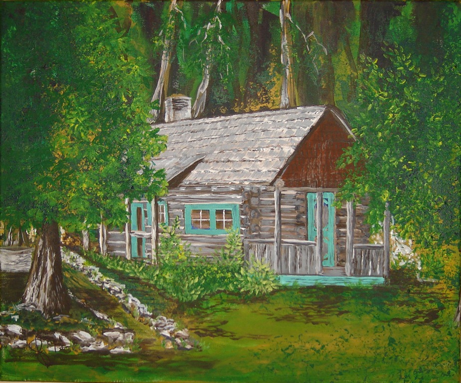 Posted: March 10, 2012 Filed under: The Shuswap | Tags: Acrylic on canvas, Art, Local artist, Shuswap Art Leave a commentAcrylic on canvas 20”x24” By Susan Feniak The cabin is situated at Cinnemousun Narrows Shuswap Lake. Another painting from a picture taken by Susan last summer in 2011. The large horse chestnut trees in front of the cabin make it hard to get a good view of the cabin. The sun was glaring off the cabins nice new metal roof that day. The cabin is no longer used as living quarters for the park ranger. UPDATE THIS PAINTING IS NO LONGER AVAILABLE FOR SALE. IT HAS A NEW HOME ON SOMEONE ELSES WALL! A GOOD THING AS MY WALLS HAVE GOTTEN A TAD CLUTTERED.