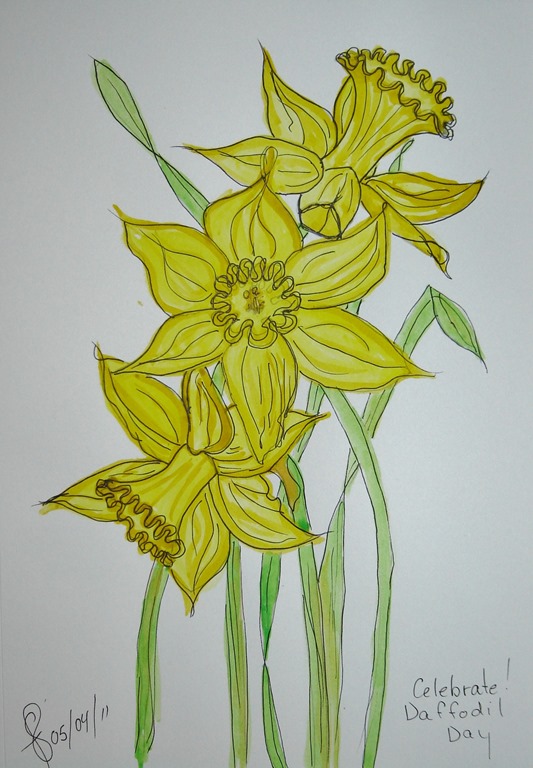 Posted: April 25, 2013 Filed under: Gardening/Flowers, Watercolors | Tags: Flowers, Local artist, original art, Paintings from the garden, Paintings of Flowers, Shuswap Art 2 CommentsThis is a little water color I did a couple of years ago to help me and others celebrate Daffodil Day April 27th. Daffodils are such a bright and cheery subject. Appropriate. Since I personally know far too many people with cancer I feel the need to promote such a celebration. I am sad to say some have lost their battle and still others continue the fight. The happiest moments are hearing of battles won!