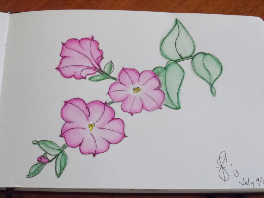 Love the simple drawings. Did you also use your watercolor pencils in the fist one? The flowers look really good!