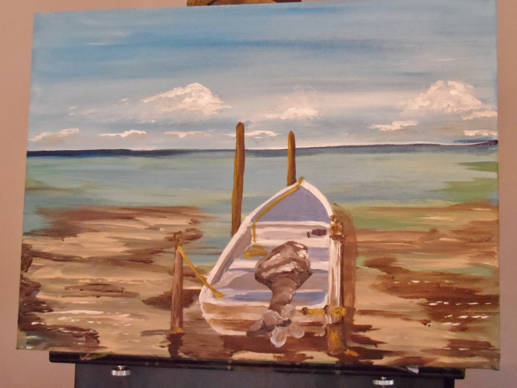 I have not had time to paint since getting home from Belize.  Today my original plan was to work out in the yard.  Goodness knows there is enough to do out there. But oh darn it decided to rain.  So here is what I ended up working on instead.  When it is finished I will take a better photo of it with all its true and truly beautiful Caribbean colors.  I hope you are all having a great weekend.  Cheers, Susan