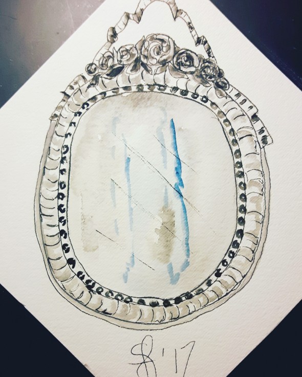 Posted: May 18, 2017 Filed under: #WorldWatercolorGroup, Holbein Artists' Water Color, Just for fun, Sketch book, Sketches/Doodles, Strathmore Paper, Susan Feniak Originals | Tags: #WorldWatercolorGroup, Holbein Watercolors, Just for fun, Sketches and Doodles, Strathmore Watercolor Paper, Susan Feniak Original Art 1 CommentMay 18th the prompt is “Glassy”. A pretty little mirror will suffice. It’s a long weekend here and I am off to enjoy it whole heartily. Perhaps there will be some art from the aft deck to share. Cheers.