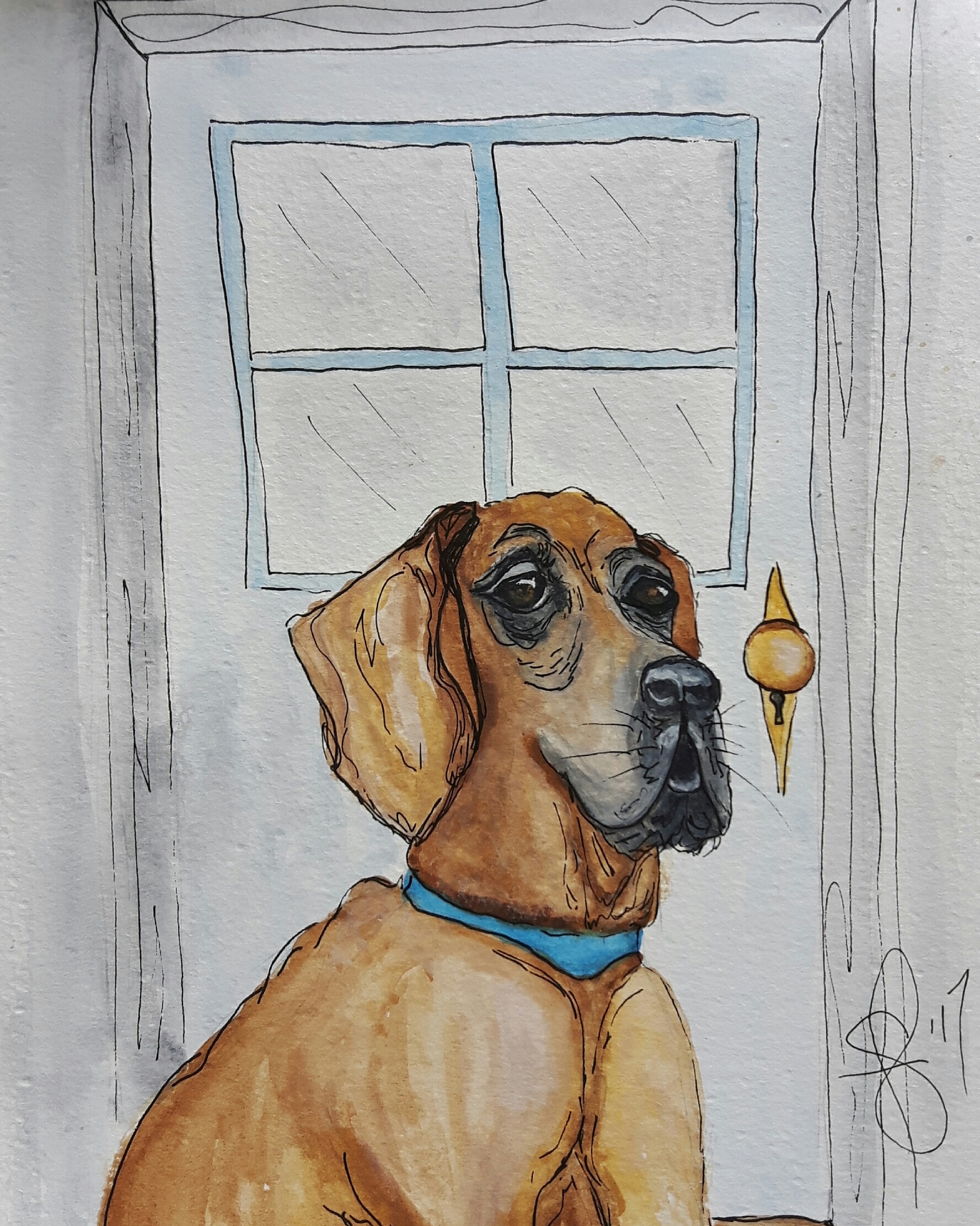 Posted: July 6, 2017 Filed under: #WorldWatercolorGroup, #Worldwatercolormonth, Paintings of Dogs, Sketches/Doodles, Susan Feniak Originals | Tags: #WorldWatercolorGroup, #Worldwatercolormonth, Paintings of Dogs, Sketches and Doodles, Susan Feniak Original Art 3 CommentsJuly 6th It’s been a busy work week and I am working on a more complicated painting so this old boy guarding the front door will do for my contribution today. Cheers and happy World Water Color Month! I have ordered my swag have you?