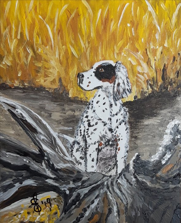 Meet “Libby”. My latest commission. Golden acrylics on 8″×10″ canvas board. Libby is an English Setter. Her Mom loves her very much. Enough to have a portrait of her painted. Admittedly painting a beloved pet portrait is no easy task. I am pleased the Mom loves what I did. Artist Susan Feniak.