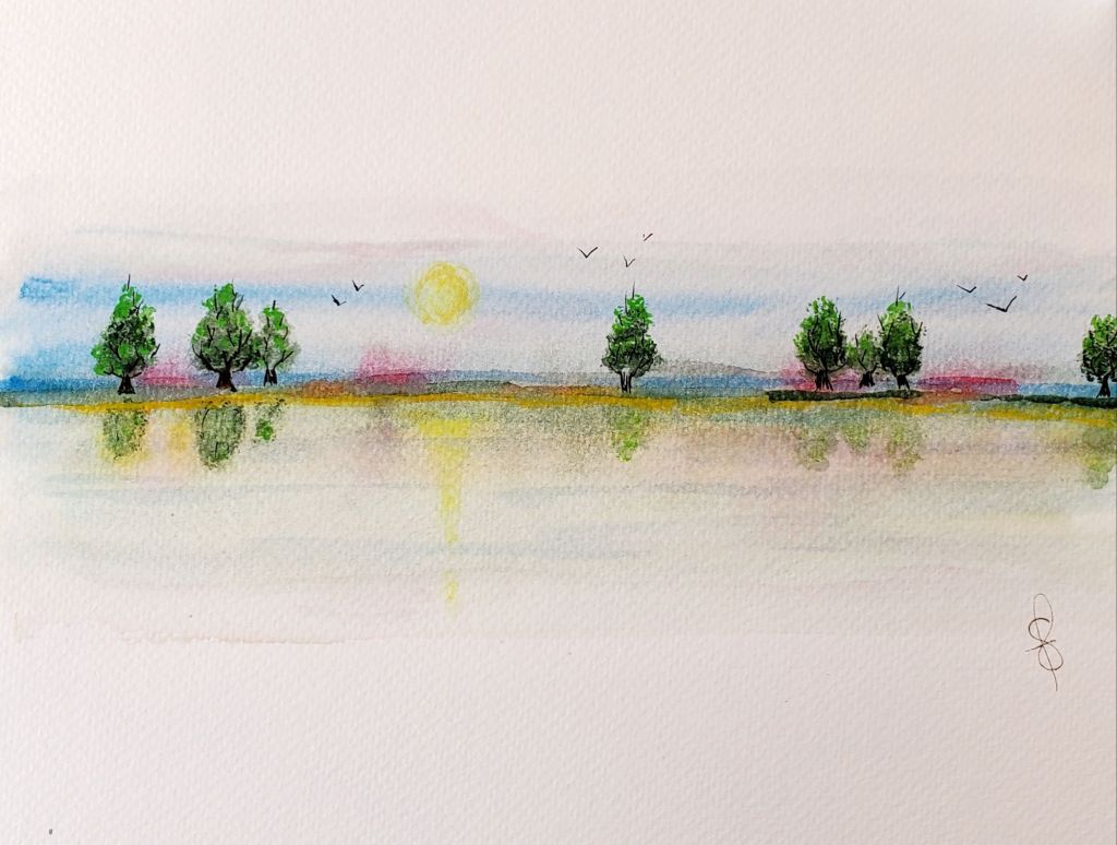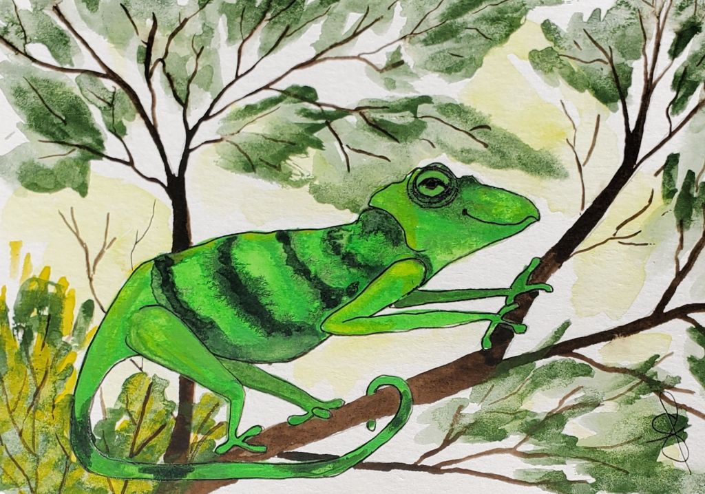 Artist Susan Feniak watercolour and ink on 5″ x 7″ card stock.