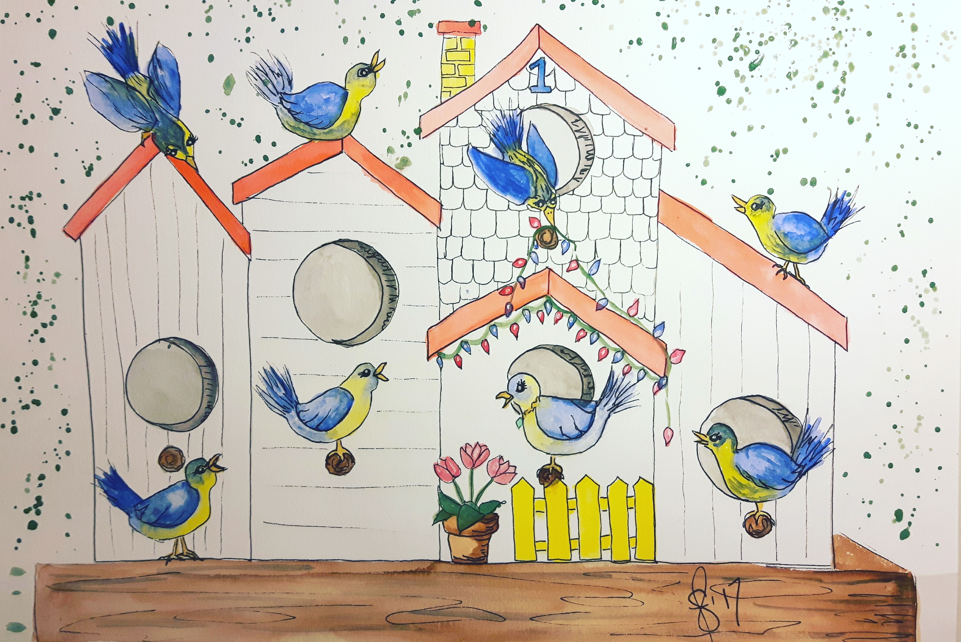 Posted: July 12, 2017 Filed under: #WorldWatercolorGroup, #Worldwatercolormonth, Canson Aquarelle, Just for fun, Paintings of Birds, Sketch book, Susan Feniak Originals, Whimsy | Tags: #WorldWatercolorGroup, #Worldwatercolormonth, Painting of birds, Sketches and Doodles, Susan Feniak Original Art, Whimsy 14 CommentsJuly 12th Do you want to keep up with the Jones’s? Why bother? Can you hear the cacophony? A bit of whimsy for you this day. Original art by Susan Feniak. QOR and Holbein Watercolors colours on Canson Aquarelle paper.