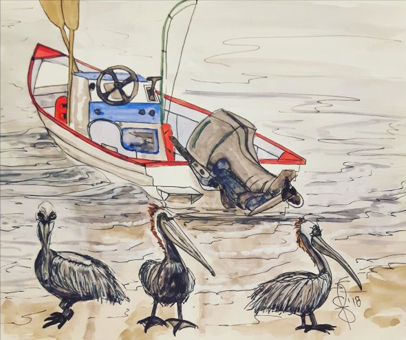 Posted: March 19, 2018 Filed under: #WorldWatercolorGroup, Canson Aquarelle, Daniel Smith Extra Fine Watercolors, Just for fun, Paintings of Birds, Paintings of boats, Susan Feniak Originals, Uncategorized | Tags: #paintingsofbirds, #WorldWatercolorGroup, Canson Paper, Daniel Smith Extra Fine Watercolors, Just because, Paintings of birds, Paintings of boats, Seaside, Susan Feniak Original Art, Susan Feniak water colours 4 Comments“Pelican Crew” Artist Susan Feniak. Daniel Smith Extra Fine Watercolors on Canson paper. 9″x12″. This is a scene I came across while on our recent holiday. No doubt the pelicans were waiting for the fishermen to provide some fishy tidbits.