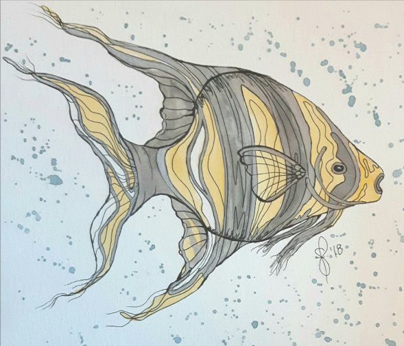 Posted: April 24, 2018 Filed under: #WorldWatercolorGroup, Canson Aquarelle, Daniel Smith Extra Fine Watercolors, Susan Feniak Originals, Uncategorized | Tags: #WorldWatercolorGroup, Canson Paper, Daniel Smith Extra Fine Watercolors, Just for fun, Susan Feniak Original Art, Susan Feniak water colours 6 CommentsGone Fishy. Artist Susan Feniak. Daniel Smith Extra Fine Watercolors on Canson paper. A little time for art after a busy day is always welcome. I also used a silver Sharpie and Pixma ink 05 to create this fish.