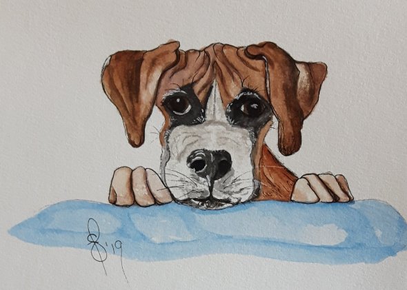 Posted: October 2, 2019 Filed under: #WorldWatercolorGroup, Canadian Artist, Commission, Cuteness, Daniel Smith Extra Fine Watercolors, Fabriano paper, Opus Art Supplies, Original art, Paintings of animals, Paintings of Dogs, Shuswap Artist, Susan Feniak art, Susan Feniak Originals, Susan Feniak water color and ink, Susan Feniaks Easel, Uncategorized, water color and ink, Whimsy | Tags: #WorldWatercolorGroup, Canadian Artist, Daniel Smith Extra Fine Watercolors, Fabriano papers, For the joy of it, Opus Art Supplies, original art, Paintings of Dogs, Shuswap Artist, Sold/Commissioned Art, Susan Feniak Original Art, Susan Feniak watercolor and ink, watercolor and ink, Whimsy 4 CommentsHave you ever done a painting that you or your partner couldn’t part with but someone else wanted to buy? That has happened to me several times of late. I find myself doing remakes. Wouldn’t you know it the remakes are more lovable then the originals. Or so it seems to me. Sometimes. Here is the new version of “Trouble?” Or Trouble 2. I do like this version as much as the first. Bonus. A commission a.k.a. special request. Watercolor and ink on Fabriano paper. SOLD.