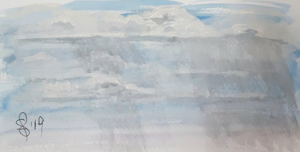 Posted: July 18, 2019 Filed under: #WorldWatercolorGroup, #Worldwatercolormonth, Fabriano paper, gouache, QoR watercolor, Quick art, Susan Feniak art, Susan Feniak water color and ink, Uncategorized | Tags: #WorldWatercolorGroup, #Worldwatercolormonth, #worldwatercolormonth2019, Fabriano papers, QoR watercolor, Sketches and Doodles, Susan Feniak watercolor and ink, watercolor and ink 2 CommentsDay 18 World Watercolor Month the prompt is clouds. So far this July has been soggy and miserable making me feel like painting gloomy low wet clouds. I did add some pretty blue. Optimistically. There is an upside to this weather. We don’t have to worry about wild fires or smoke filled days.