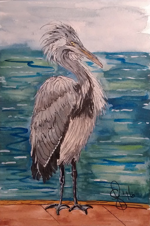 Posted: June 8, 2016 Filed under: #NatureDoodlewash, Draw a Bird Day, Holbein Water Colors, Just for fun, Paint a Bird Day, Paintings of Birds, Sketch book, Sketches/Doodles, Susan Feniak art, Susan Feniak Originals, Uncategorized | Tags: #NatureDoodlewash, Draw a Bird Day, Holbein Watercolors, Paintings of birds, sketch book, Sketches/Doodles, Susan Feniak Original Art, water colors 41 CommentsBlue Heron June 8th Its time for #Draw A Bird Day again so I am combining it with #NatureDoodlewash for the day. The Blue Heron speaks for himself. An elegant and normally shy elusive bird this one liked to visit us while at our marina in Sicamous a couple of summers ago. I have been meaning to do his portrait ever since.