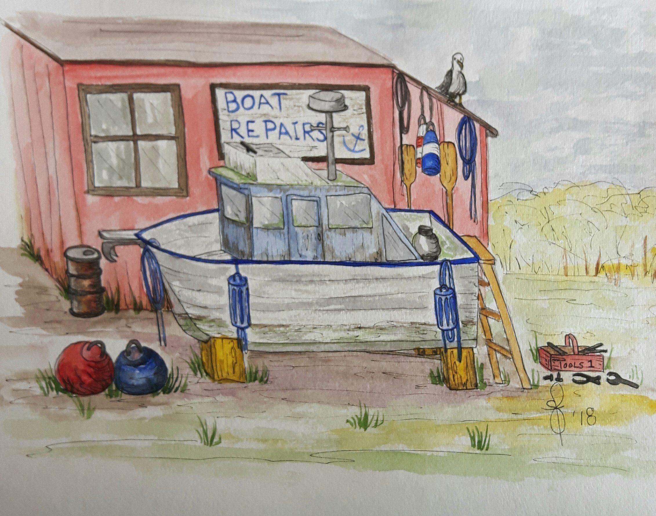 Posted: August 1, 2018 Filed under: #paintingaday, #WorldWatercolorGroup, Boating, Gallery One Fifty Sicamous, Just for fun, Original art, Paintings of boats, QoR watercolor, Strathmore Paper, Susan Feniak Originals, Whimsy | Tags: #paintingaday, #WorldWatercolorGroup, Boating, For the joy of it, Gallery One Fifty, original art, Paintings of boats, QoR watercolor, Seaside, Strathmore Watercolor Paper, Susan Feniak Original Art, Susan Feniak water colours, Whimsy 2 CommentsSOLD Hello August! July was a creative month for me. There are a few leftovers of that creativity to share. Boat Repairs is one of several. Artist Susan Feniak. QoR watercolor and ink on Strathmore paper.