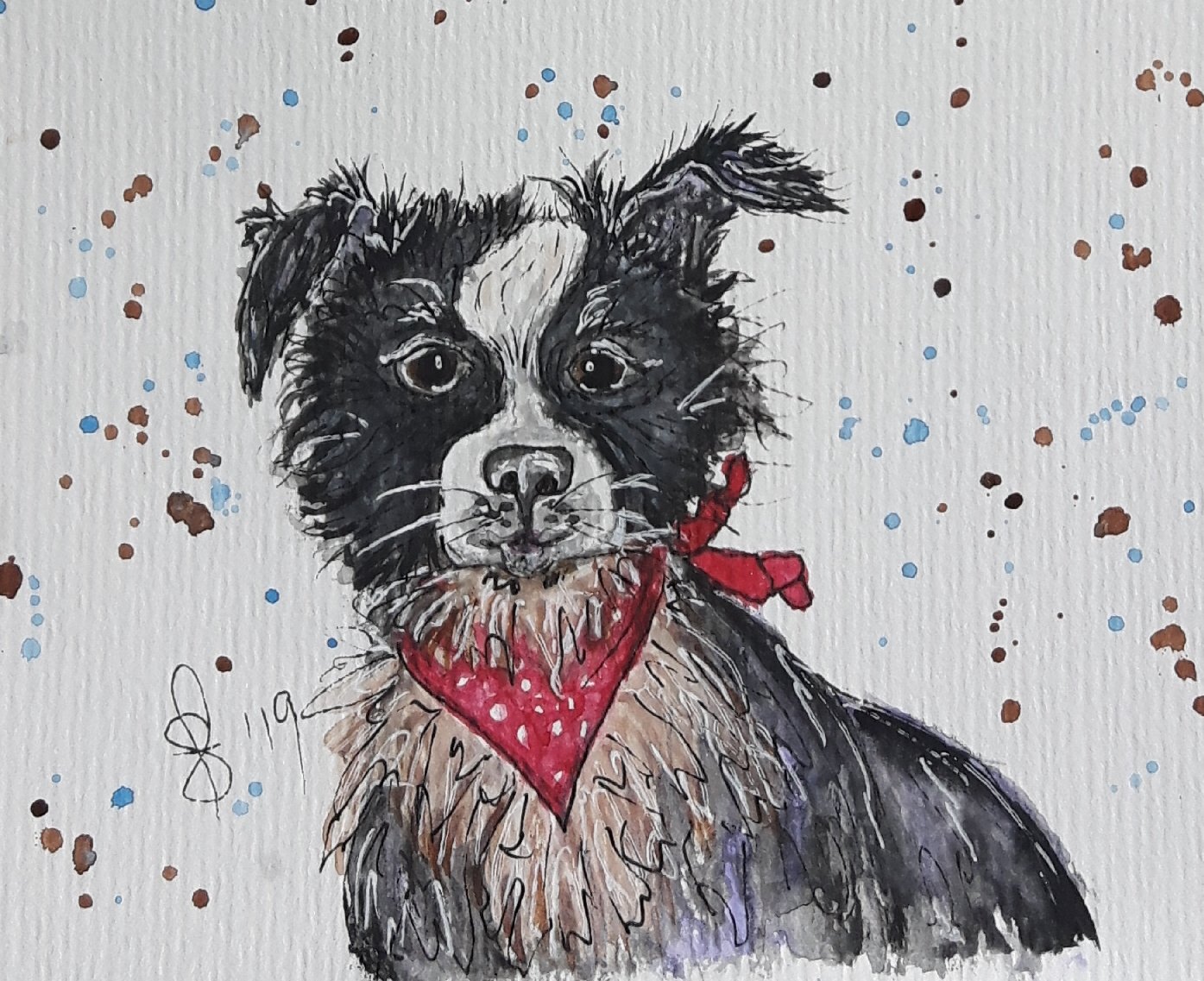 Posted: October 2, 2019 Filed under: #WorldWatercolorGroup, Canadian Artist, Commission, Cuteness, Daniel Smith Extra Fine Watercolors, Fabriano paper, Opus Art Supplies, Original art, Paintings of animals, Paintings of Dogs, Shuswap Artist, Susan Feniak art, Susan Feniak Originals, Susan Feniak water color and ink, Susan Feniaks Easel, Uncategorized, water color and ink, Whimsy | Tags: #WorldWatercolorGroup, Canadian Artist, Daniel Smith Extra Fine Watercolors, Fabriano papers, For the joy of it, Opus Art Supplies, original art, Paintings of Dogs, Shuswap Artist, Sold/Commissioned Art, Susan Feniak Original Art, Susan Feniak watercolor and ink, watercolor and ink, Whimsy 4 CommentsHave you ever done a painting that you or your partner couldn’t part with but someone else wanted to buy? That has happened to me several times of late. I find myself doing remakes. Wouldn’t you know it the remakes are more lovable then the originals. Or so it seems to me. Sometimes. Here is the new version of “Trouble?” Or Trouble 2. I do like this version as much as the first. Bonus. A commission a.k.a. special request. Watercolor and ink on Fabriano paper. SOLD.