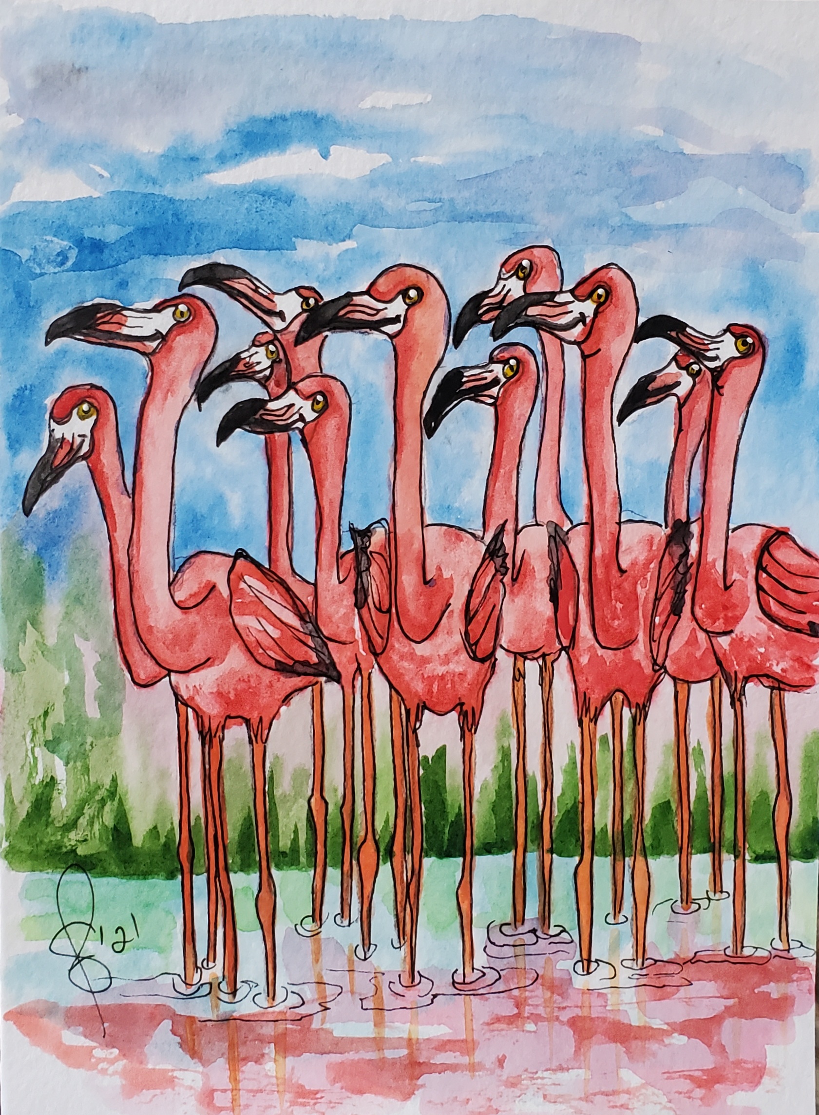 Posted: July 30, 2021 Filed under: #doodlewash, #doodlewashaday, #WorldWatercolorGroup, #Worldwatercolormonth, Canadian Artist, flamingo, greeting cards, Opus Art Supplies, Original art, Paintings of Birds, pink, QoR watercolor, self taught artist, Shuswap Artist, Sketches/Doodles, Strathmore Paper, Susan Feniak Originals, Susan Feniak water color and ink, Uncategorized, water color and ink, Whimsy, WorldWatercolorMonth | Tags: #canadianartist, #doodlewash, #doodlewashaday, #paintingaday #paintingsofboats, #paintingsofbirds, #watercolorandink, #WorldWatercolorGroup, #Worldwatercolormonth, Canadian Artist, Card's, greeting cards, Opus Art Supplies, original art, Painting of birds, QoR watercolor, self taught artist, Shuswap Artist, Sketches and Doodles, Strathmore card stock, Susan Feniak Original Art, Susan Feniak watercolor and ink, watercolor and ink, Whimsy 4 Comments#WorldWatercolorMonth Day 30 prompt “Feathered”. For me it wouldn’t be a proper #WorldWatercolorMonth without more flamingos! Artist Susan Feniak. QoR watercolors and ink on Strathmore card stock. Happy Friday everyone. Cheers Susan