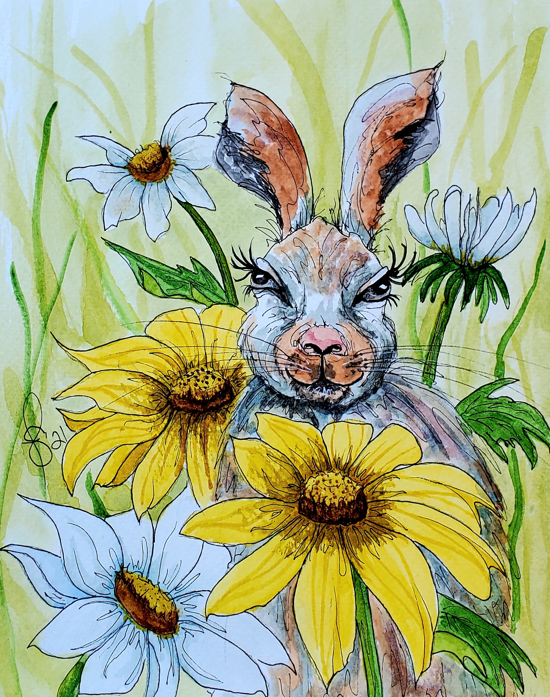 Posted: June 6, 2021 Filed under: #WorldWatercolorGroup, Canadian Artist, Cuteness, Fabriano paper, Opus Art Supplies, Original art, Paintings of animals, Paintings of Flowers, paintings of rabbits, QoR watercolor, self taught artist, Shuswap Artist, Susan Feniak art, Susan Feniak Originals, Susan Feniak water color and ink, Susan Feniaks Easel, Uncategorized, water color and ink, Whimsy | Tags: #canadianartist, #doodlewashaday, #shuswapartist, #watercolorandink, #WorldWatercolorGroup, Canadian Artist, Cute, Fabriano papers, For the joy of it, Opus Art Supplies, original art, Paintings of Flowers, paintings of rabbits, QoR watercolor, self taught artist, Shuswap Artist, Susan Feniak Original Art, Susan Feniak watercolor and ink, watercolor and ink, Whimsy 2 Comments“Daisy in the Daisies” Just look at that expression and those eye lashes! Some girls have all the luck! Artist Susan Feniak. QoR watercolors and ink on Fabriano paper. Approximately 8″ x 10″.