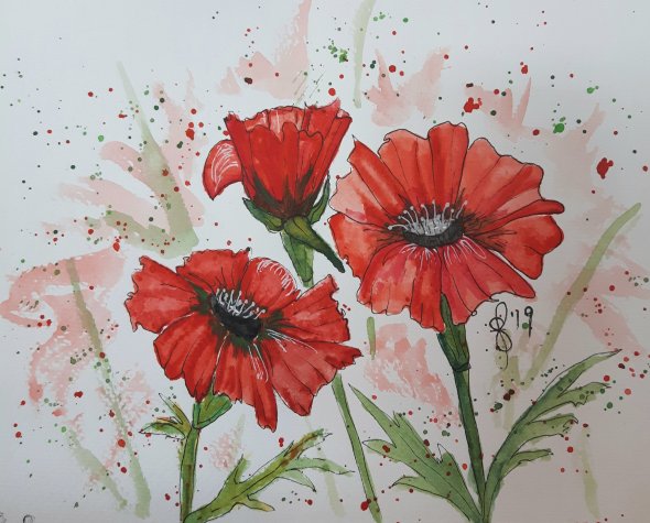 Posted: July 19, 2019 Filed under: #WorldWatercolorGroup, #Worldwatercolormonth, Fabriano paper, Paintings of Flowers, Paintings of Poppies, QoR watercolor, Quick art, splatter, Susan Feniak water color and ink, Susan Feniaks Easel, water color and ink | Tags: #WorldWatercolorGroup, #Worldwatercolormonth, #worldwatercolormonth2019, Fabriano papers, Paintings of Flowers, QoR watercolor, Quick art, Susan Feniak Original Art, Susan Feniak watercolor and ink, watercolor and ink, Watercolor Crayons 5 CommentsDay 19 SOLD World Watercolor Month and the prompt Splashes of Color was nothing but fun for this colour loving gal. The splashing part was even more enjoyable. Considering me and my usual style this is a loosely done painting.