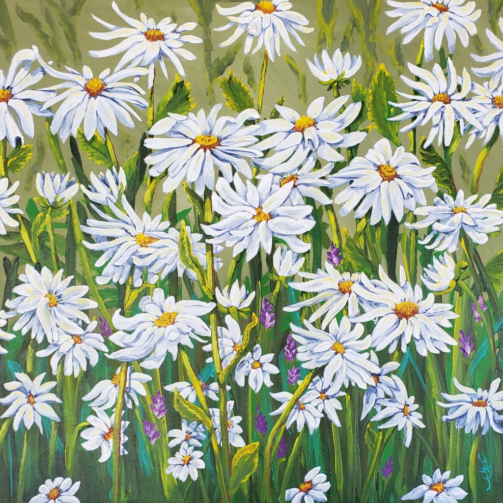 Posted: July 13, 2022 Filed under: Acrylic on Canvas, Acrylic Paintings, Art for Sale, Canadian Artist, Golden Acrylics, Golden Artist Colors, Opus Art Supplies, Original art, Paintings of Flowers, self taught artist, Summer Fun, support local, Susan Feniak art, Susan Feniak Originals, Susan Feniaks Easel | Tags: #canadianartist, #shuswapartist, Acrylic on canvas, Art, Art for Sale, Canadian Artist, Flowers, For the joy of it, Golden Acrylics, Golden Acrylics on Canvas, Golden Artist Colors, Opus Art Supplies, original art, self taught artist, shop local, Shuswap Artist, support artists, support local, Susan Feniak art, Susan Feniak Original Art, Susan Feniak Acrylic Leave a commentI present to you for your pleasure my latest painting, “A Daisy A Day”. There are many enjoyable hours of work represented here. Painting isn’t work for me but I will admit to letting some of the many daisies drive me crazy. When all is said and done I enjoyed creating this piece as much as any other. I hope you like this happy summery painting.