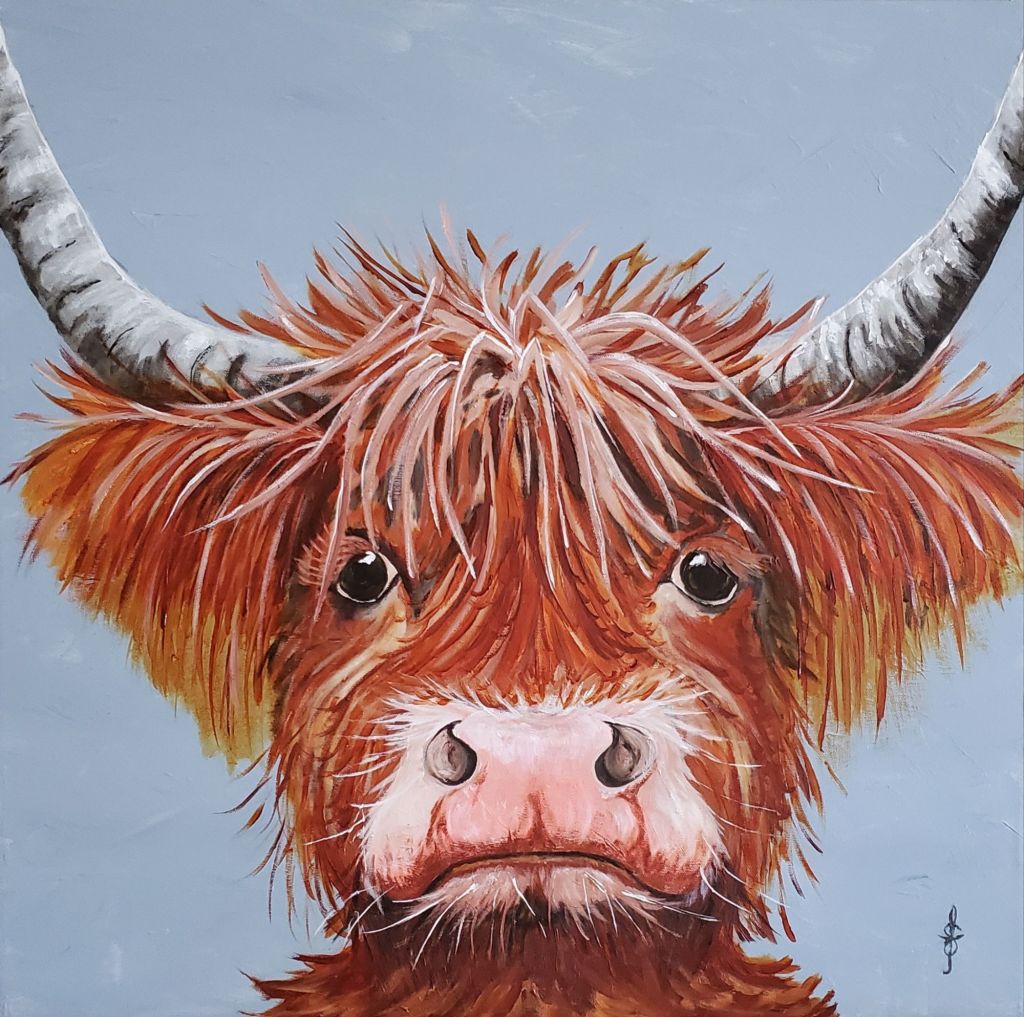 Meet “Donal”. Yes, I painted another “heilan coo”. a.k.a. highland cow. Because of “Skye” and his popularity I was commissioned by the daughter of his purchaser to paint another Skye. Acknowledging that I can’t paint the same thing exactly the same way twice (especially on a smaller scale) I agreed. Donal is the result. I do like the fact that both beasties are completely different characters. That’s the joy of creating. I also like the fact that both will be hanging in welcoming appreciative homes. Many thanks to the lovers of Donal and Skye.