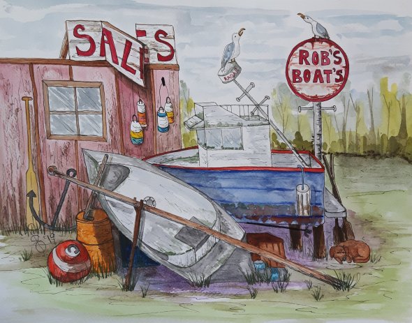 Posted: September 6, 2019 Filed under: #WorldWatercolorGroup, Boating, Opus Art Supplies, Original art, Paintings of boats, QoR watercolor, Sicamous BC, Susan Feniak art, Susan Feniak Originals, Susan Feniak water color and ink, Susan Feniaks Easel, thankful, The Shuswap, Uncategorized, Whimsy | Tags: #WorldWatercolorGroup, Fabriano papers, Local artist, Mara Lake, Opus Art Supplies, original art, Paintings of boats, QoR watercolor, Shuswap Art, Sicamous, Susan Feniak art, Susan Feniak Original Art, Susan Feniak watercolor and ink, Susan Feniak , watercolor and ink, Whimsy 4 CommentsThis painting “Rob’s Boats” is my way of saying thank you to Rob at Three Buoys Marina in Sicamous. He has provided space for me to show my art in their office/store for the past three summers. As an artist I appreciate any opportunity given me to share my art. It’s all I want. Share my art and hope someone will like it and enjoy it. Rob likes my painting “Dan’s Boats” so this one is similar to it.