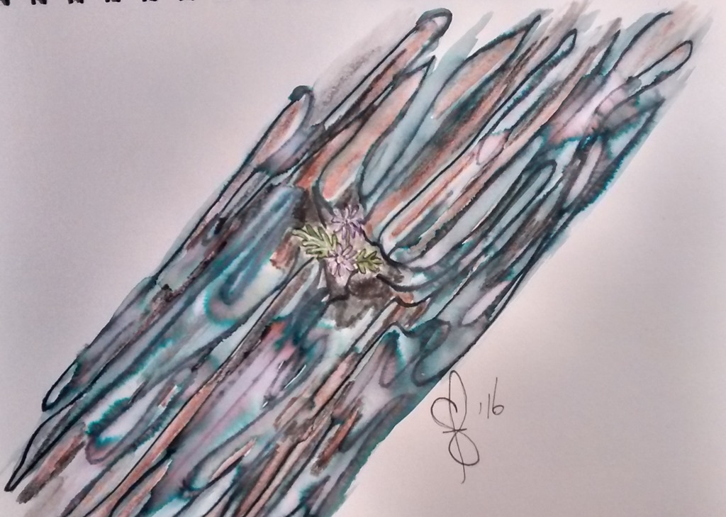 Posted: June 6, 2016 Filed under: #doodlewash, #NatureDoodlewash, Elegant Writer, Just for fun, Pencil Crayons, Sketch book, Sketches/Doodles, Susan Feniak Originals, Uncategorized, Water color pencils | Tags: #doodlewash, #NatureDoodlewash, Elegant Writer, Just for fun, sketch book, Sketches/Doodles, Susan Feniak Original Art, watercolor pencils 14 CommentsJune 6th Has me on a nature walk along a rocky outcrop. Even here one must remember to look down and see natures tenacity. The tiniest mauve flowers cling to rock and life and flourish.