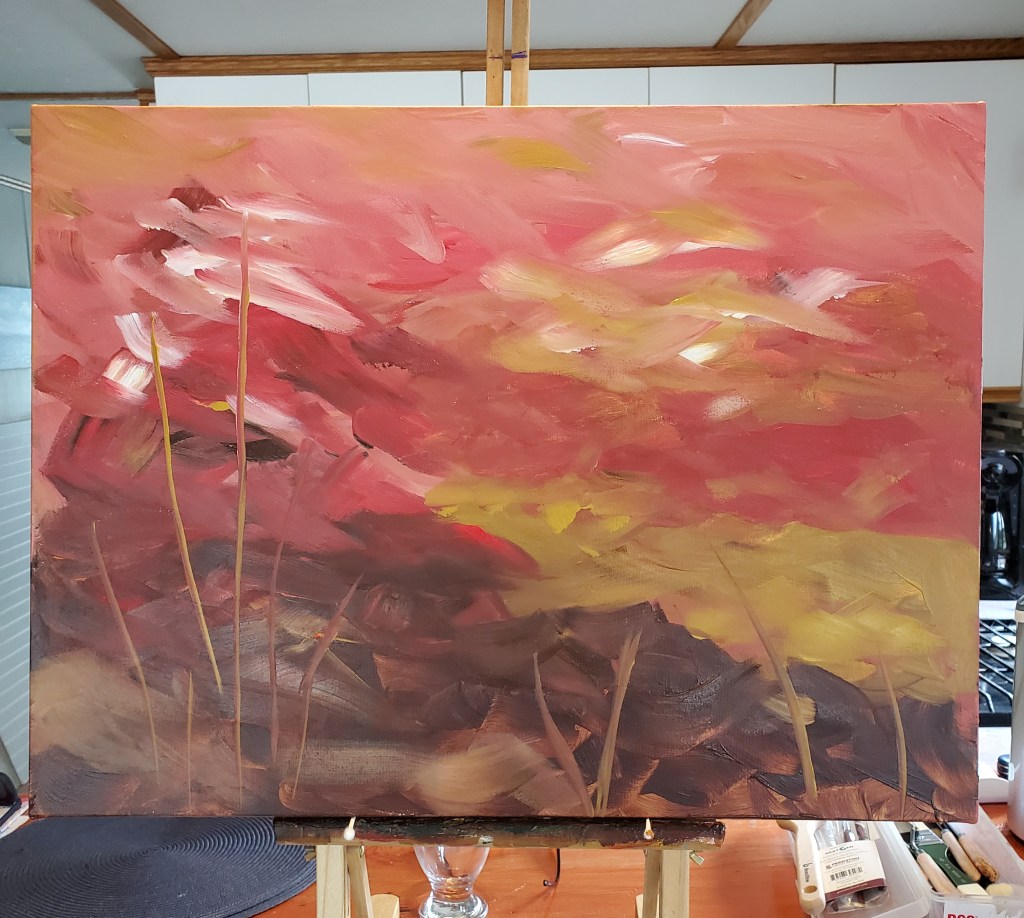 Another revision is in progress on my easel. I painted the original in October of 2021. Shortly after my dear brother died. I was never completely happy with the original painting. Considering the circumstances no one, including myself, should be surprised by that. At the time I thought that I would live with the painting for awhile, think on it. I did manage to give it a title, “Ebb andFlow”. Lately I have been giving this painting and another one a great deal of thought. No better time than the present to have a go at revising and hopefully improving it.