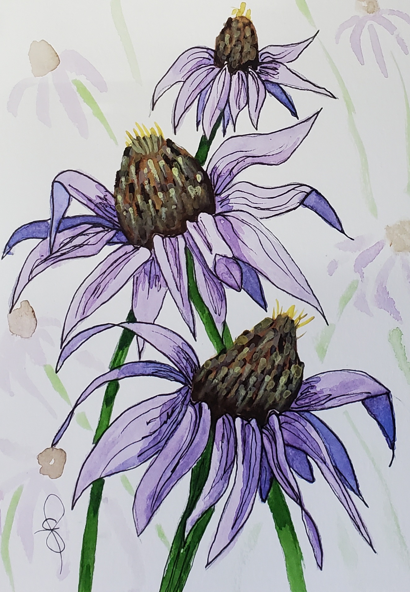 World Watercolor Month Day 26 and 26. Is there an explanation needed? It’s no secret that I adore highland cattle. I also love flowers. Please note the Echinacea (purple cone flowers) have SOLD🔴 As this month long celebration of painting the world in watercolor and beauty winds down I wish we could continue to spread the love.