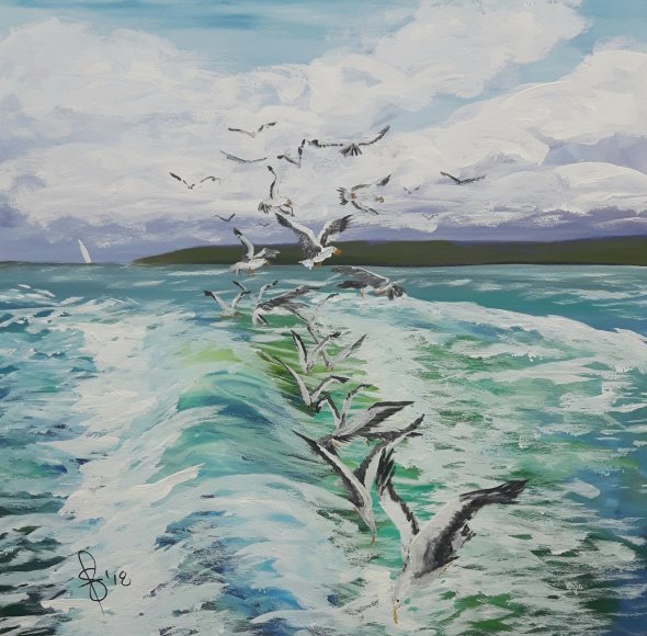 Posted: August 12, 2018 Filed under: Acrylic on Canvas, Acrylic Paintings, Golden Acrylics, Just for fun, Original art, Paintings of Birds, Seaside, Susan Feniak art, Susan Feniak Originals | Tags: #paintingsofbirds, Acrylic on canvas, Boating, For the joy of it, Golden Acrylics on Canvas, Golden Artist Colors, Just for fun, Paintings of birds, Seaside, Susan Feniak art, Susan Feniak Original Art, Susan Feniak Acrylic 10 CommentsClean Up Crew. Artist Susan Feniak. Golden Artist Colors on box canvas. 24″×24″. As always I am inspired by the ocean, water or seaside. I recall many scenes like this while living on the west coast.