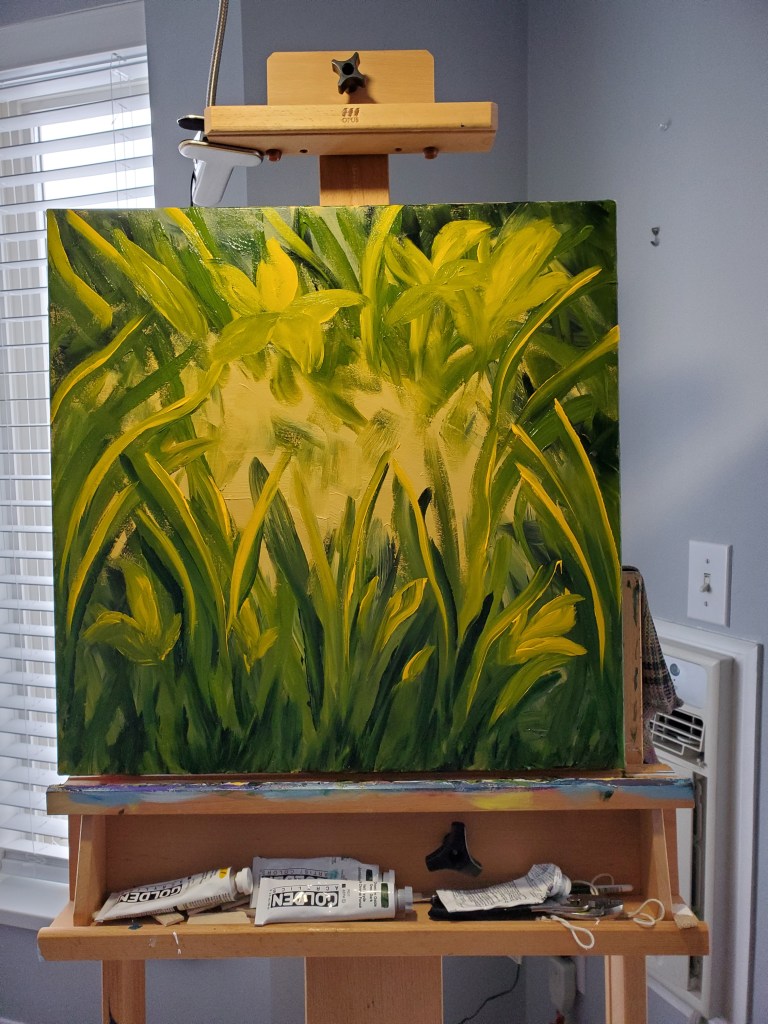 New art!! So new it’s still drying on my easel and I have just given it a title, “Sunny Disposition”.