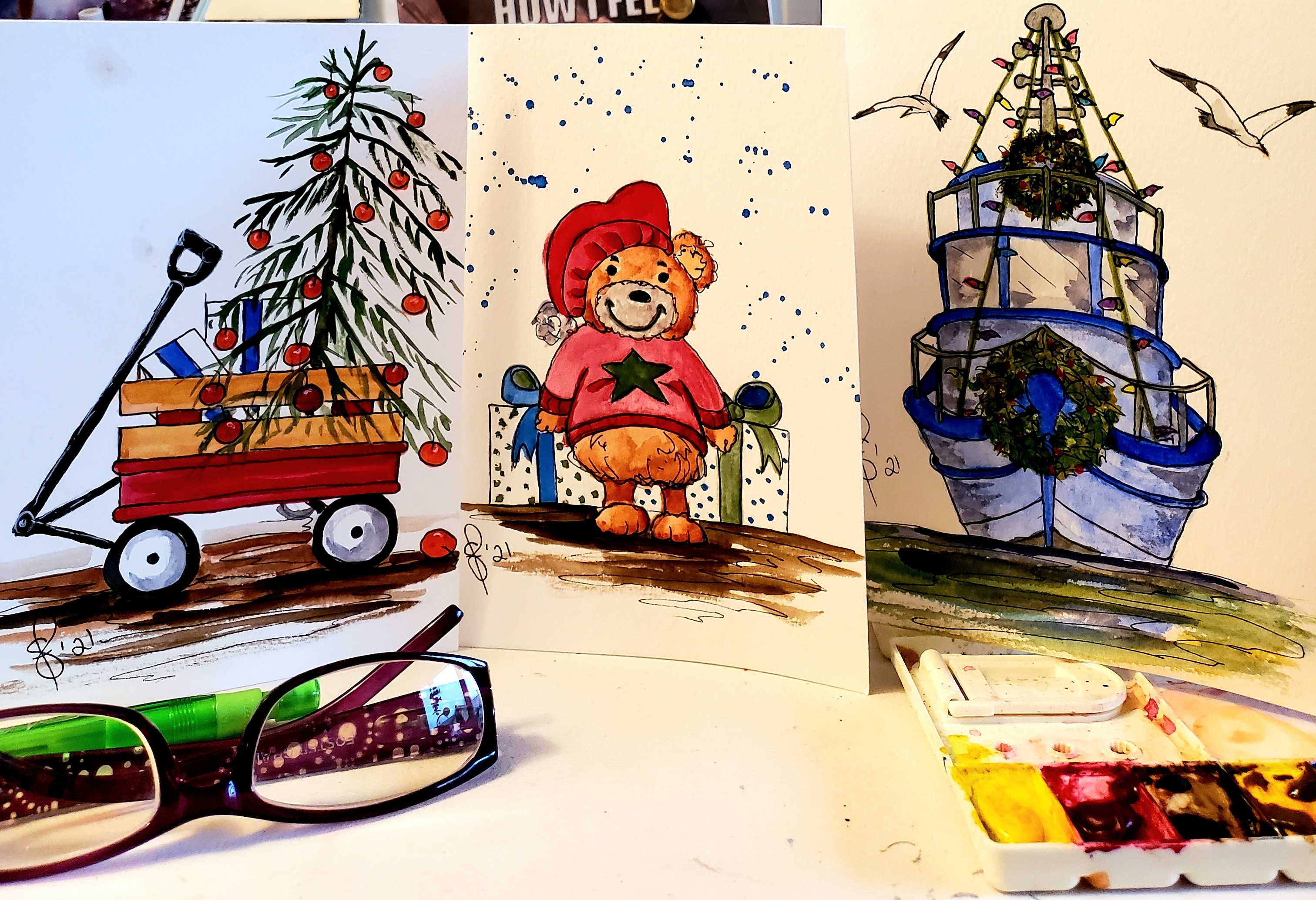 Posted: October 21, 2023 Filed under: Art for Sale, Christmas cards, christmas greetings, Cuteness, greeting cards, one of a kind, shop local, support local, Susan Feniak art, Susan Feniak water color and ink | Tags: #canadianartist, Art for Sale, Canadian Artist, Card's, Christmas cards, christmas greetings, one of a kind, shop local, Shuswap Artist, support artists, support local, support small business, Susan Feniak art, Susan Feniak watercolor and ink 2 Comments