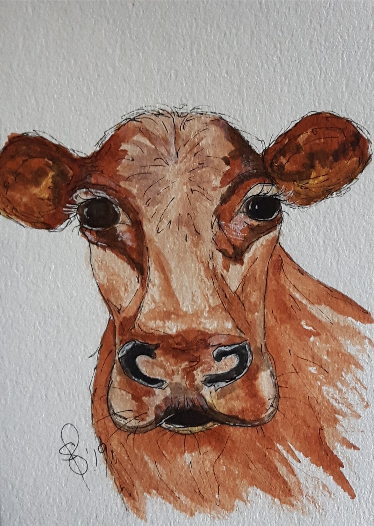 Posted: April 27, 2019 Filed under: #WorldWatercolorGroup, Just for fun, Opus Art Supplies, Original art, QoR watercolor, Strathmore Paper, Susan Feniak Originals, Susan Feniak water color and ink, water color and ink | Tags: #WorldWatercolorGroup, Card's, Country Art, Cute, Opus Art Supplies, original art, paintings of cows, QoR watercolor, Strathmore card stock, Susan Feniak Original Art, Susan Feniak watercolor and ink, watercolor and ink, Whimsy 6 CommentsSOLD This is Camille. Another one of the greeting cards I have been creating of late. Camille’s luminous eyes are hard to resist. Artist Susan Feniak. QoR watercolor and ink on Strathmore card stock.