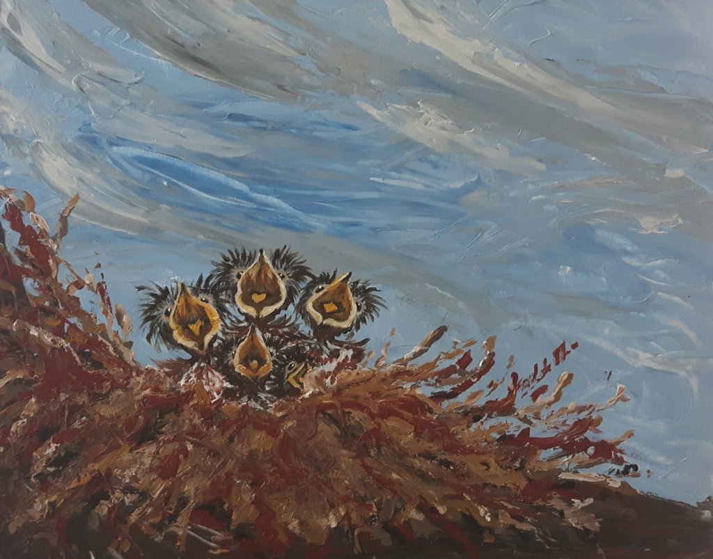 Between getting caught up with work (I work from home) and other commitments there has been precious little time for art and getting caught up with it. I started this painting before we went away. By the time I got back to playing with it I couldn’t remember my original plan. Whether that is my age or these challenging times I don’t know. This is what I am doing with what I started. If all else fails add a nest and some birdies and carry on from there. This is me and my art.