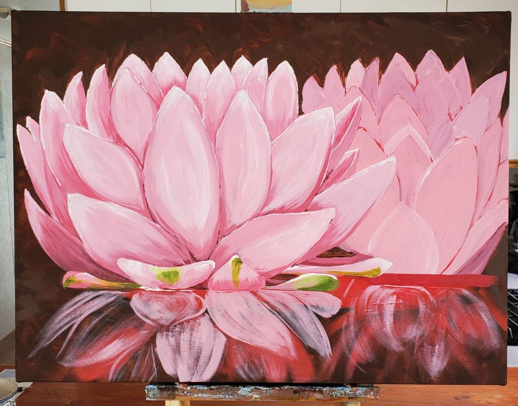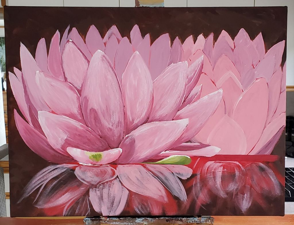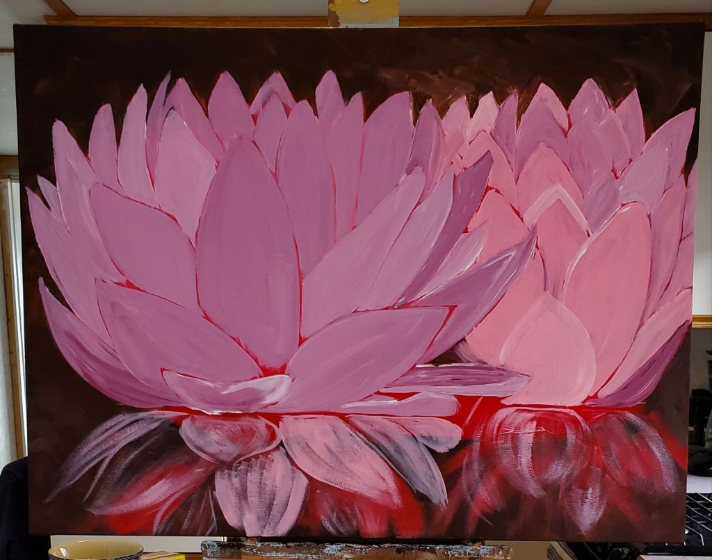 This week I decided to revisit another painting that I did years ago. That one was titled “My Pink Pond Lillies”. That painting has long since found it’s forever home.
