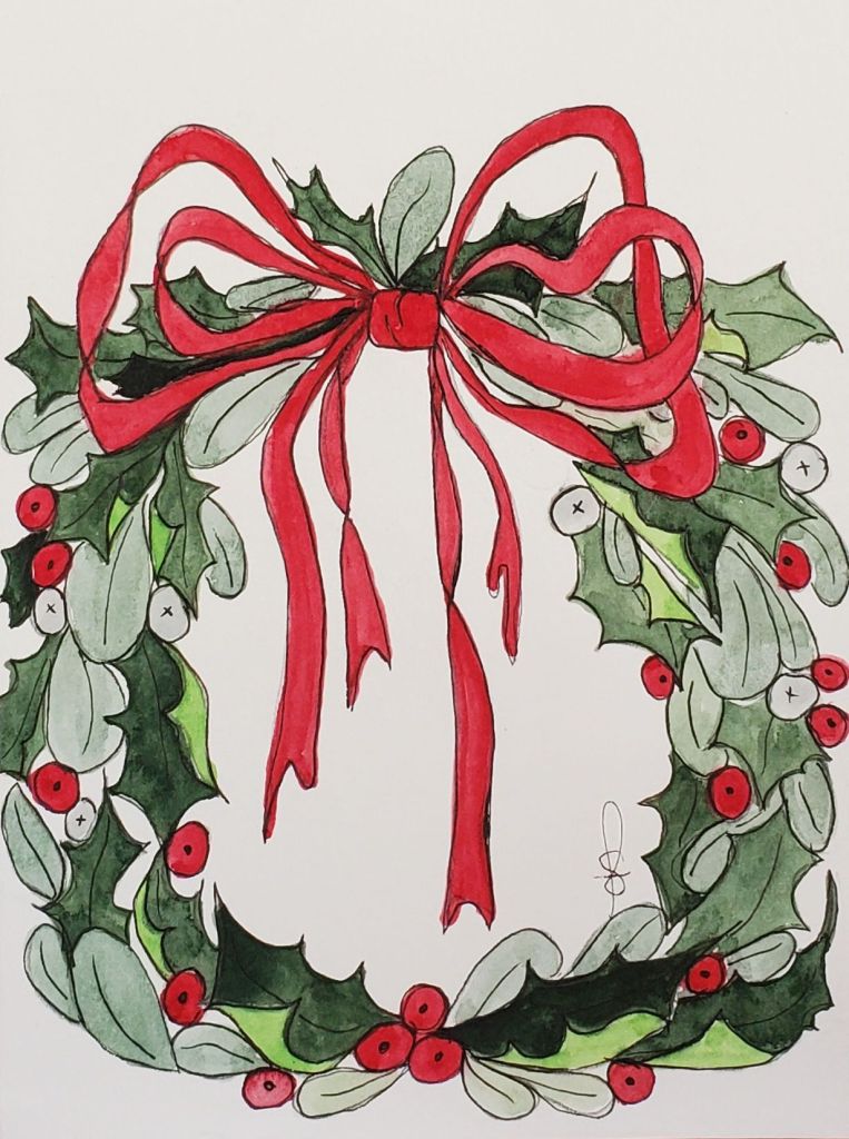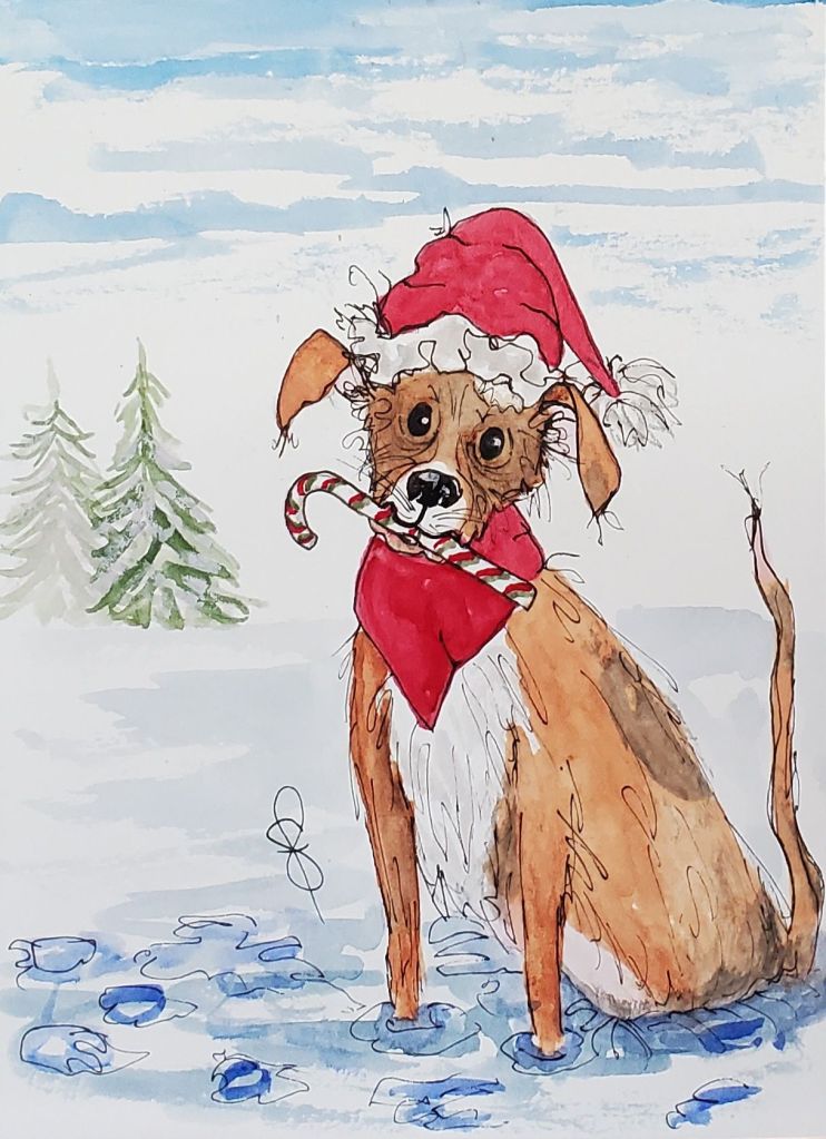 September was a busy month. Carey, my husband retired! At 71 years young it was time. Anyway it was cause for celebration. We also celebrated his birthday. In between all the celebrating I was busily filling an order for 10 of my “one of a kind” Christmas cards. Sorry, but it is that time of year again. When an artist has to plan and come up with fresh ideas for Christmas. In between that creativity I was making more cards to sell at a store here in Sicamous called, Willow. There was the limited edition 2025 calendars to design. And more painting and creating with Mara Muse, my favorite piece so far this year. I didn’t include a photo of it but you can check it out on a previous blog.