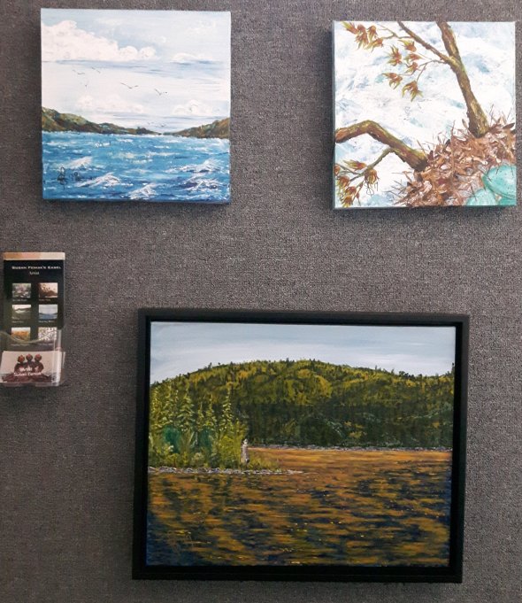 Here is some of my art on display and for sale at Gallery One Fifty in Sicamous. The gallery is at The Red Barn on Riverside Ave. Open daily from 10 a.m. to 4 p.m. If you want to meet me I host almost every Sunday. Hope to see you there. Cheers Susan Feniak