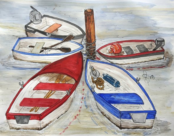Posted: May 16, 2018 Filed under: #WorldWatercolorGroup, Boating, Daniel Smith Extra Fine Watercolors, Fabriano cold press paper, Gallery One Fifty Sicamous, Paintings of boats, Shuswap Lake, Susan Feniak art, Uncategorized, Whimsy | Tags: #WorldWatercolorGroup, Daniel Smith Extra Fine Watercolors, Fabriano papers, Gallery One Fifty, Just for fun, Paintings of boats, Shuswap Art, Susan Feniak Original Art, Susan Feniak water colours, Whimsy Leave a commentDingy Hitching Post. Artist Susan Feniak. Daniel Smith Extra Fine Watercolors on Fabriano paper. One of six paintings I have for sale at Three Buoys Marina in Sicamous. My art will be featured there this coming weekend. Remember I am also the featured artist at Gallery One Fifty in Sicamous. Busy times! Have a fun and safe holiday weekend. SOLD