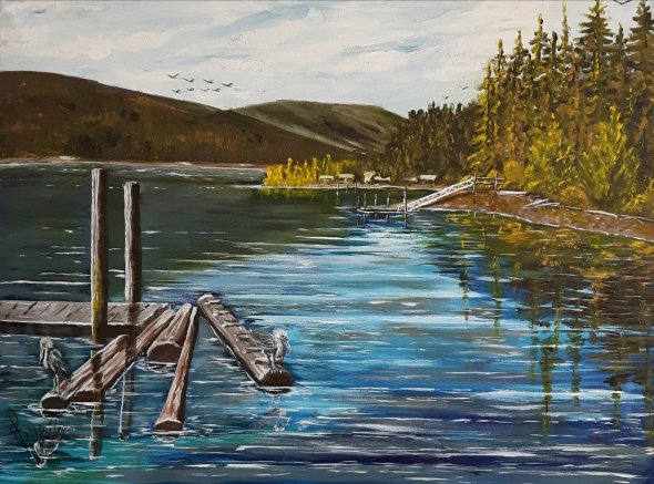 Posted: August 10, 2019 Filed under: Acrylic on Canvas, Acrylic Paintings, blue heron, Gallery One Fifty Sicamous, Golden Acrylics, Golden Artist Colors, Lakescapes, Mara Lake BC, Opus Art Supplies, Original art, Shuswap Lake, Sicamous BC, Sold Work, Susan Feniak art, Susan Feniak Originals, Susan Feniaks Easel, The Shuswap, Uncategorized | Tags: Acrylic on canvas, Art, blue heron, For the joy of it, given away, Golden Acrylics, Golden Acrylics on Canvas, Golden Artist Colors, Local artist, Mara Lake, Opus Art Supplies, original art, Shuswap Art, Sicamous, Sold Art, Susan Feniak art, Susan Feniak Original Art, Susan Feniak Acrylic 12 CommentsSOLD My painting “Mara Morning” at Gallery One Fifty in Sicamous. Thank you to the new owners. I am pleased it found a new home and hope you enjoy it for years to come. It’s always reassuring to learn that someone likes what you put on canvas enough to hang it on their wall in their own home. Mara Morning is the view I get to enjoy every day during the summer. It’s a part of me and who I am. Cheers Susan Feniak