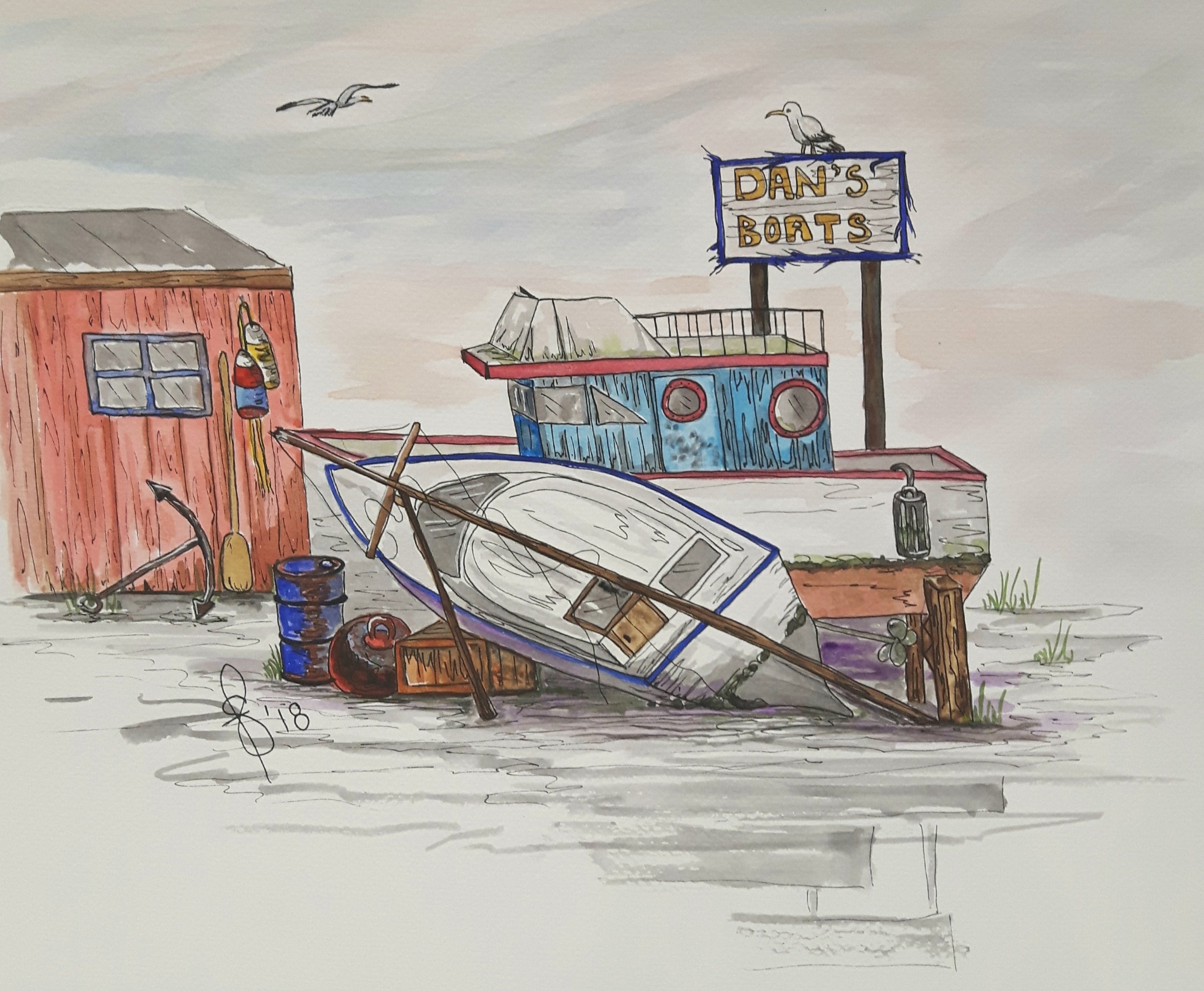 Posted: September 30, 2019 Filed under: #WorldWatercolorGroup, Canadian Artist, Opus Art Supplies, Paintings of boats, QoR watercolor, Shuswap Artist, Sicamous BC, Sold Work, Susan Feniak art, Susan Feniak Originals, Susan Feniak water color and ink, Susan Feniaks Easel, thankful, The Shuswap, Uncategorized, water color and ink, Whimsy | Tags: #WorldWatercolorGroup, Boating, Canadian Artist, Opus Art Supplies, original art, Paintings of boats, QoR watercolor, Shuswap Art, Shuswap Artist, Sold Art, Susan Feniak art, Susan Feniak Original Art, Susan Feniak watercolor and ink, watercolor and ink, Whimsy 4 CommentsThank you Rob “Ziggy”. Thank you for purchasing my painting “Dan’s Boats”. I hope it looks good hanging in your home. Thank you for making the 2019 boating season at Three Buoys fun and for all your hard work. Carey and I appreciate all that you do. Cheers