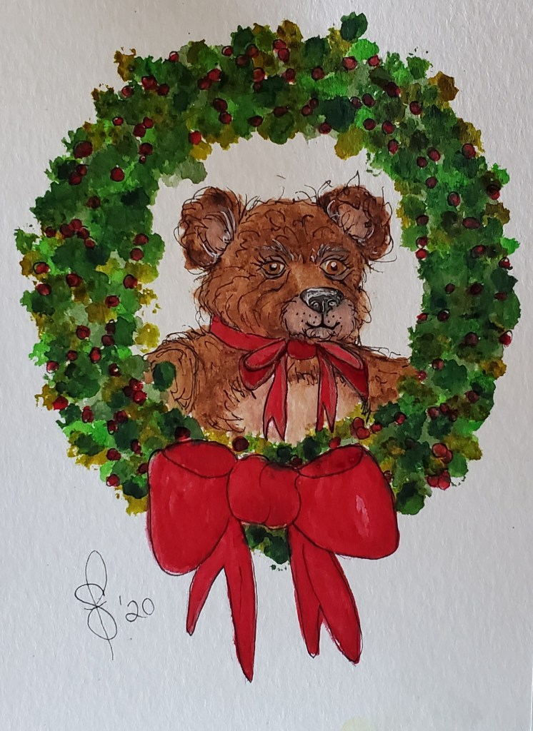 Finally, my last few Christmas cards for 2020. I think. Artist Susan Feniak. Watercolor and ink on card stock.