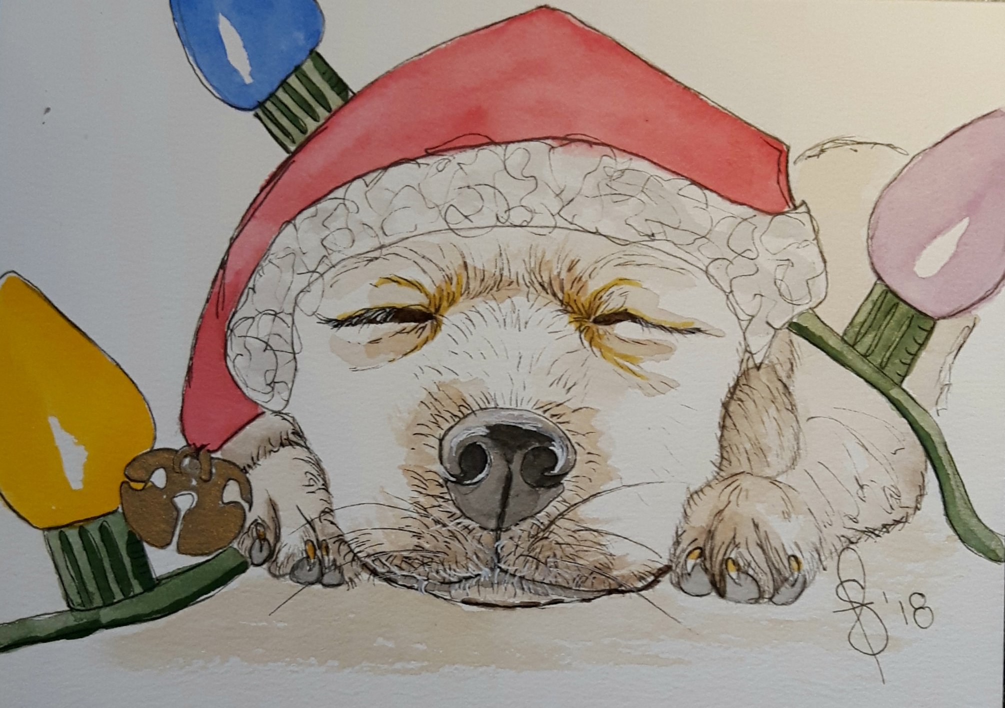 Posted: October 19, 2018 Filed under: #WorldWatercolorGroup, christmas greetings, Cuteness, Daniel Smith Extra Fine Watercolors, Paintings of Dogs, Strathmore Paper, Susan Feniak water color and ink, water color and ink | Tags: #WorldWatercolorGroup, Card's, Christmas, christmas greetings, Daniel Smith Extra Fine Watercolors, Paintings of Dogs, Paintings of puppies, Strathmore card stock, Susan Feniak watercolor and ink, watercolor and ink 4 CommentsAt last a bit of time to create another Christmas card. I rather like this one but perhaps a tad too time consuming to make more of. Someone very special will receive this one.