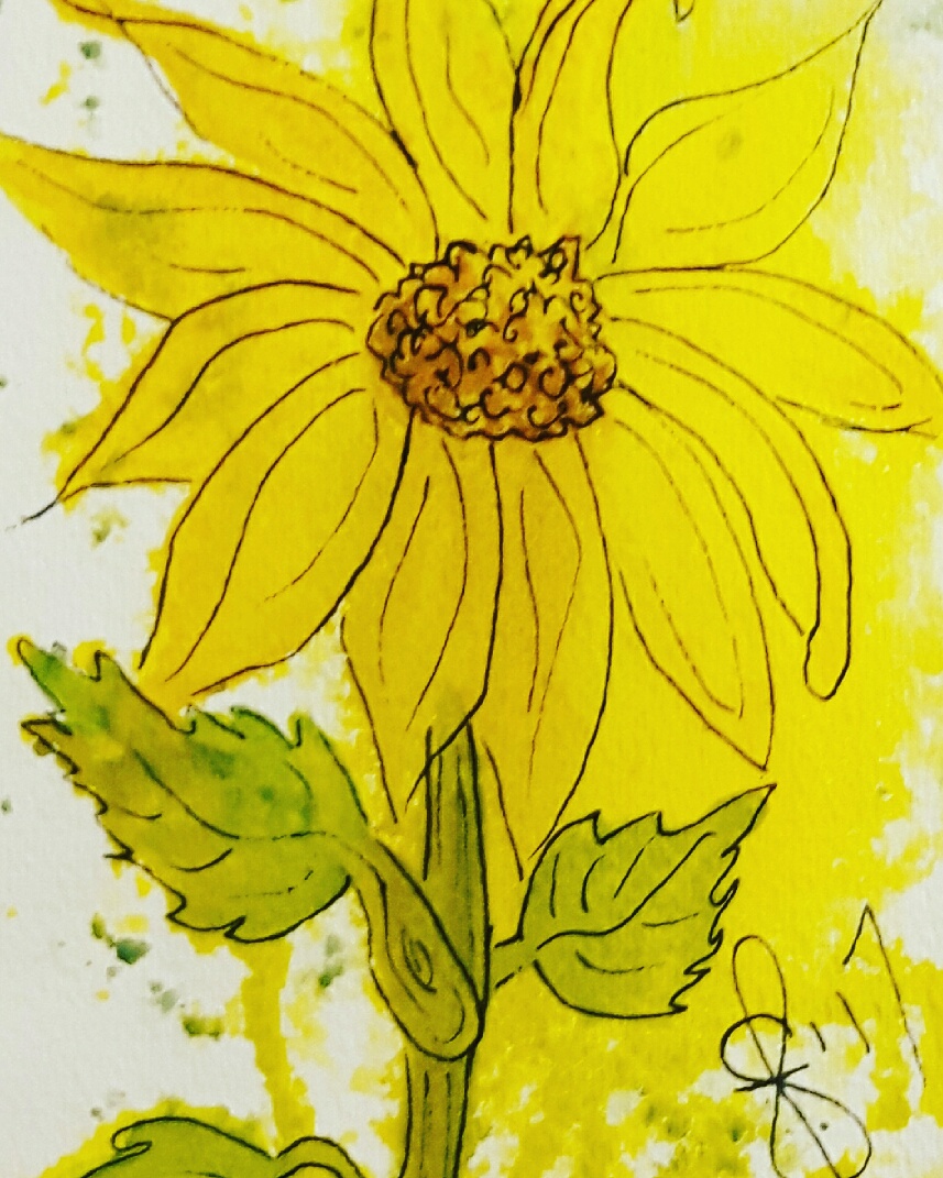 Posted: July 27, 2017 Filed under: #WorldWatercolorGroup, #Worldwatercolormonth, Paintings of Flowers, QOR water color, Sketches/Doodles, Susan Feniak Originals | Tags: #paintingaday #paintingsofflowers, #WorldWatercolorGroup, #Worldwatercolormonth, QOR, Sketches and Doodles, Susan Feniak Original Art 7 CommentsJuly 27th To me a sunflower is a bit of sunshine. Original art by Susan Feniak. QOR water color on Strathmore Paper. 3″×5″ A looser painting after a series of serious. Cheers Susan