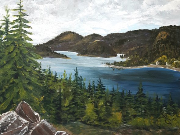 Posted: October 4, 2018 Filed under: Acrylic on Canvas, Acrylic Paintings, Golden Acrylics, Lakescapes, Shuswap Lake, Susan Feniak Originals | Tags: Acrylic on canvas, For the joy of it, Golden Acrylics, Golden Acrylics on Canvas, Golden Artist Colors, landscapes, Shuswap Lake, Sicamous, Susan Feniak Original Art, Susan Feniak Acrylic 9 CommentsMara View. Every year we climb the hill at Bay View Estates just outside Sicamous BC and admire the view of Mara Lake from on high. I have wanted to paint that view for years. Hope you enjoy. I certainly got into the zone for this one. Cheers Susan.