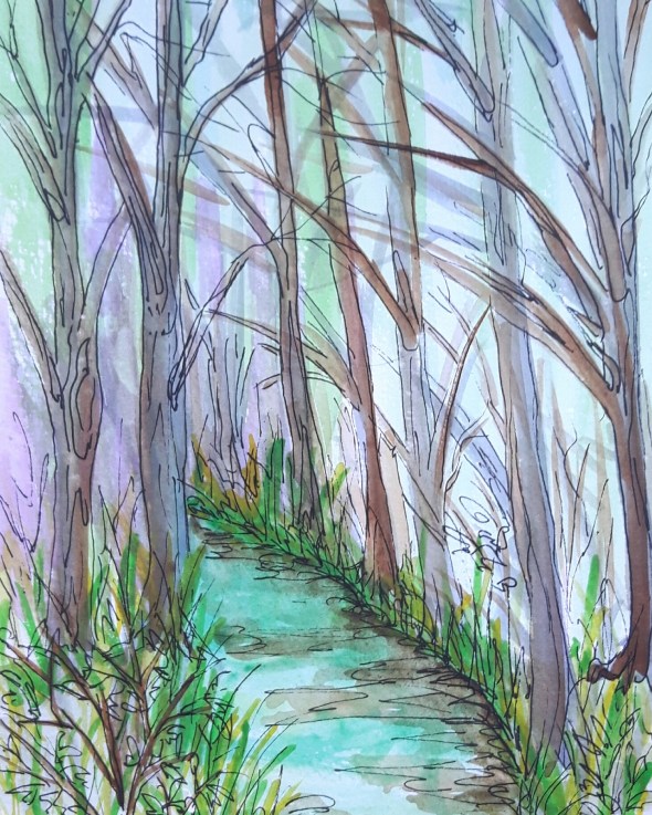 Posted: July 30, 2017 Filed under: #paintingaday, #WorldWatercolorGroup, #Worldwatercolormonth, Paintings of Trees, Sketch book, Susan Feniak Originals | Tags: #WorldWatercolorGroup, #Worldwatercolormonth, Just for fun, sketch book, Sketches and Doodles, Susan Feniak Original Art 9 CommentsJuly 30th Let’s all go down to the misty wood today. I do hope there is nothing around the corner. Original art by Susan Feniak. Koi Water colour on Opus Finest paper.