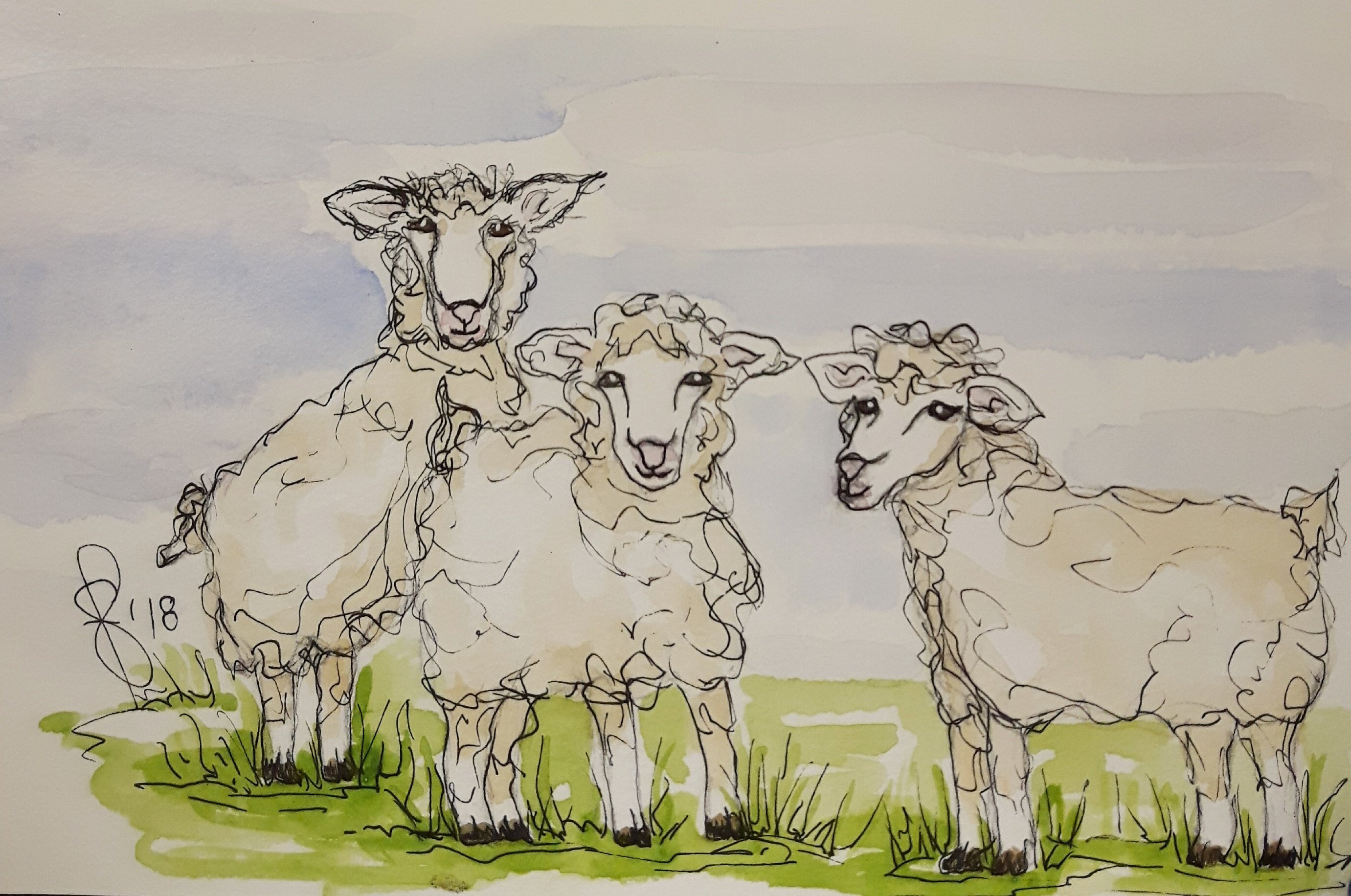 Posted: January 19, 2018 Filed under: #WorldWatercolorGroup, Sketches/Doodles, Strathmore Paper, Susan Feniak Originals, Uncategorized, Watercolors, Windsor Newton Cotman Water Colours | Tags: #WorldWatercolorGroup, Paintings of sheep, sketch book, Strathmore Watercolor Paper, Susan Feniak Original Art, Susan Feniak water colours, Windsor Newton Cotman Water Colours 5 CommentsThis curious group of sheep are on the last page of one of my favourite sketchbooks. Another sketchbook filled! Artist Susan Feniak. Windsor Newton Cotman Water Colours on Strathmore paper. 8:5″×5:5″