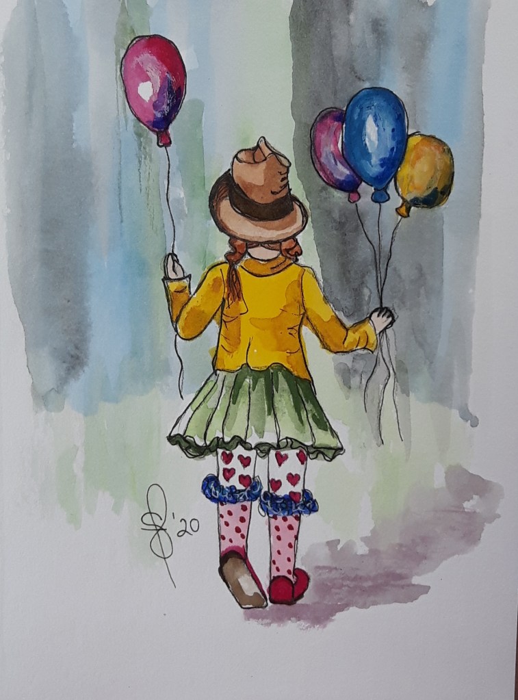 World Watercolor Month Day 15 prompt “Forgotten”. This card has a history. Awhile ago I was inspired by another artists advertisement in an artist magazine. I can’t remember the name of that artist or which magazine. Then I was going to send the card as a birthday card but changed my mind. This little girl is based loosely on another artists work. Because I try to do only original work I didn’t post the card publicly on social media. Not to mention I painted this card awhile ago. Like I said it has a history. Ergo in my mind perfect for “Forgotten”. QoR watercolors and Pixma Micron ink on Strathmore card stock. worldwatercolormonth.com #WorldWatercolorMonth #susanseasel