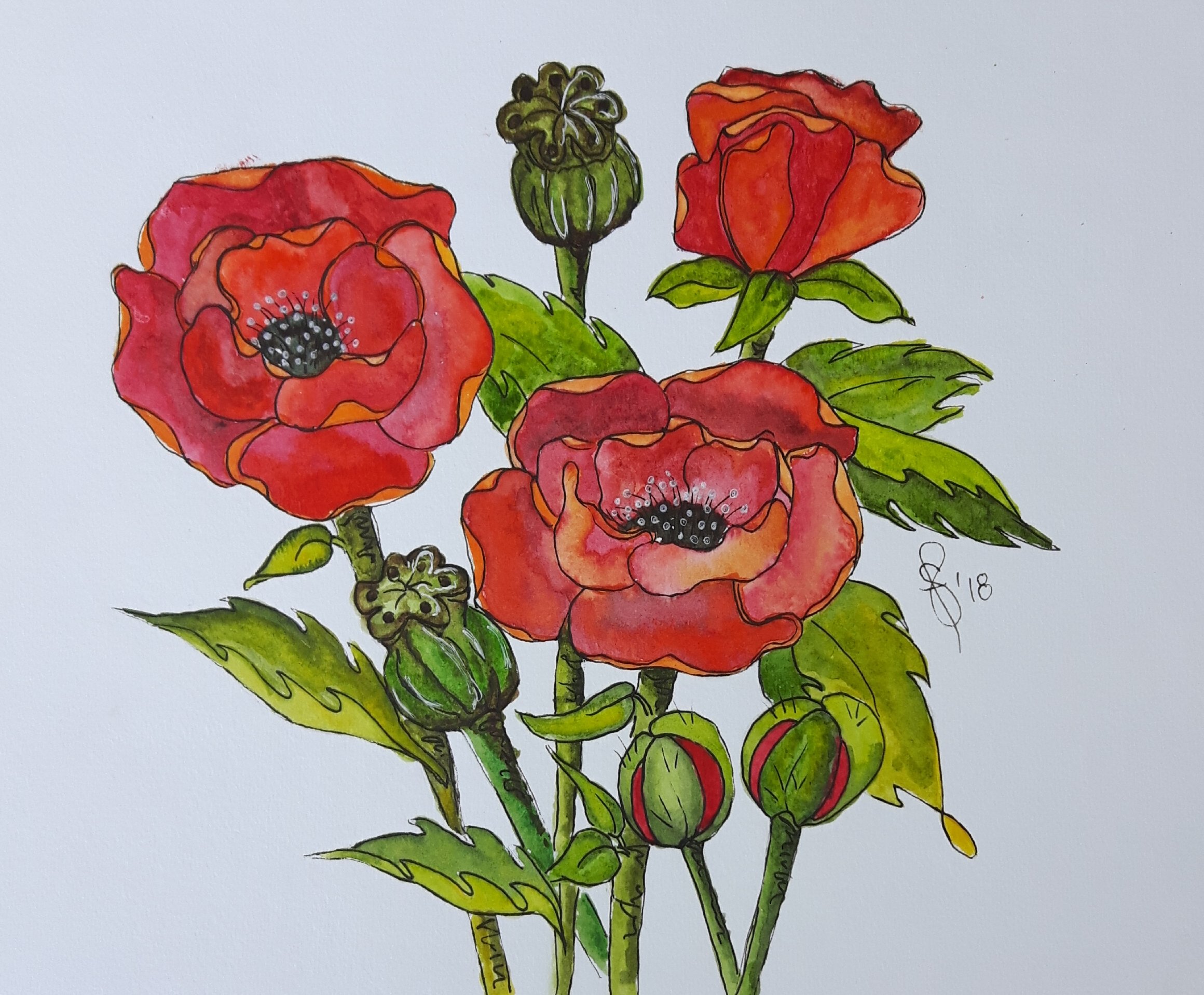 Posted: May 23, 2018 Filed under: #WorldWatercolorGroup, Paintings of Flowers, Paintings of Poppies, Strathmore Paper, Susan Feniak art, Uncategorized, Watercolors, Windsor Newton Cotman Water Colours | Tags: #WorldWatercolorGroup, For the joy of it, Paintings from the garden, Paintings of Flowers, Strathmore Watercolor Paper, Susan Feniak art, Susan Feniak water colours, water colors, water colour paintings, Windsor Newton Cotman Water Colours 6 CommentsRecently I received a card from a dear friend. That card inspired me. It is a watercolor by “Kate Larsson Watercolors “,”Bold Poppies”. This is my spin on that card. Artist Susan Feniak. Windsor Newton Cotman Watercolors on Strathmore paper. 9″×12″ SOLD