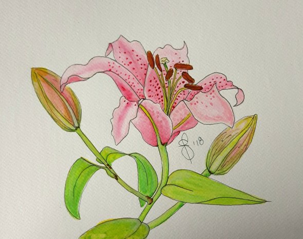 Posted: June 14, 2018 Filed under: #WorldWatercolorGroup, Fabriano cold press paper, Paintings of Flowers, Susan Feniak art, Susan Feniak Originals, Uncategorized, Windsor Newton Cotman Water Colours | Tags: #paintingaday #paintingsofflowers, #WorldWatercolorGroup, Fabriano papers, For the joy of it, Paintings from the garden, Paintings of Flowers, Sketches of Flowers or Plants, Susan Feniak Original Art, Susan Feniak water colours, Windsor Newton Cotman Water Colours 7 CommentsOne of my favourite flowers are pink lily’s. Artist Susan Feniak. Windsor Newton Cotman Water Colours on Fabriano paper. 8″×10″.