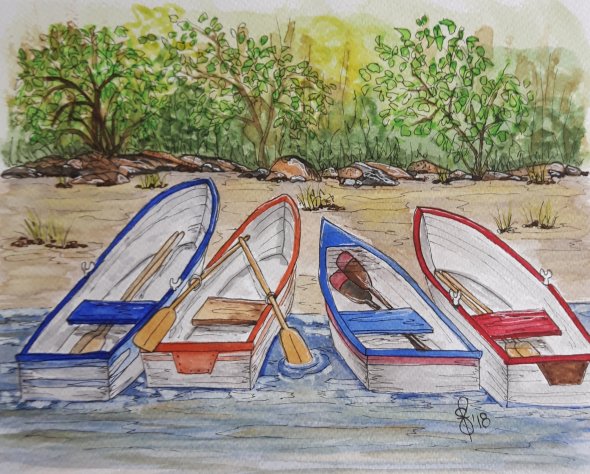 Posted: July 17, 2018 Filed under: #WorldWatercolorGroup, #Worldwatercolormonth, Doodlewashed, Fabriano cold press paper, Just for fun, Original art, Paintings of boats, Seaside, Susan Feniak art, Susan Feniak Originals, Whimsy, Windsor Newton Cotman Water Colours | Tags: #WorldWatercolorGroup, #Worldwatercolormonth, Boating, Fabriano papers, For the joy of it, Paintings of boats, Seaside, Susan Feniak Original Art, Susan Feniak water colours, Whimsy, Windsor Newton Cotman Water Colours 4 CommentsSOLD “Dan’s Boats” Artist Susan Feniak. Watercolour and Ink on Fabriano paper. 11″×14″. I am sure there is a story to tell but whatever has happened it appears Dan’s Boats has fallen into disrepair or onto hard times. My imagination at work.
